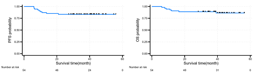 截至2025年2月,中位随访时间42.2个月(34.7-46.1),2年PFS率为83.3%(95% CI:70.4-91.0),2年OS率达到88.9%(95% CI:76.9-94.9)。